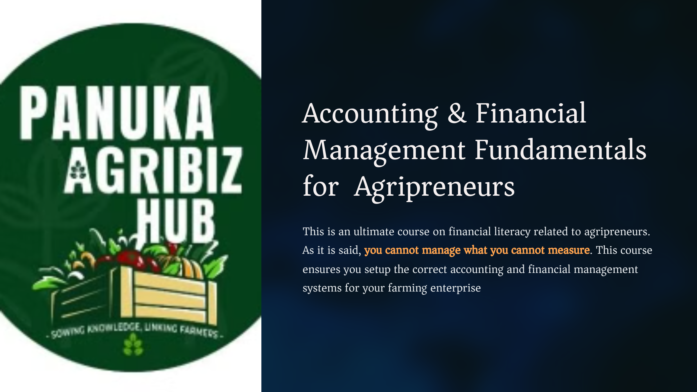 This is an ultimate course on financial litreacy related to agripreneurs. As it is said,
