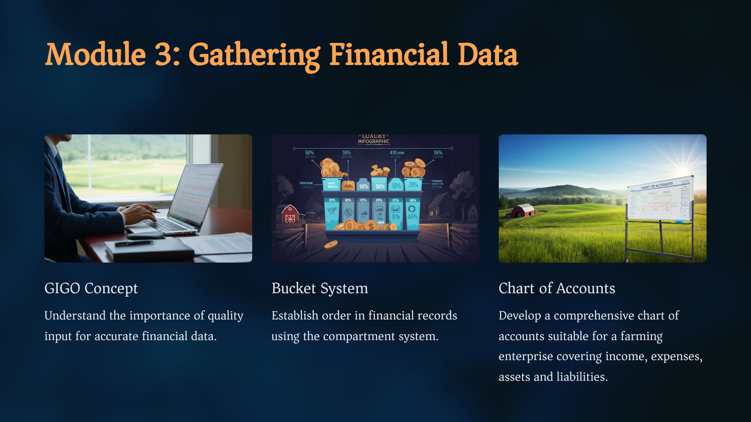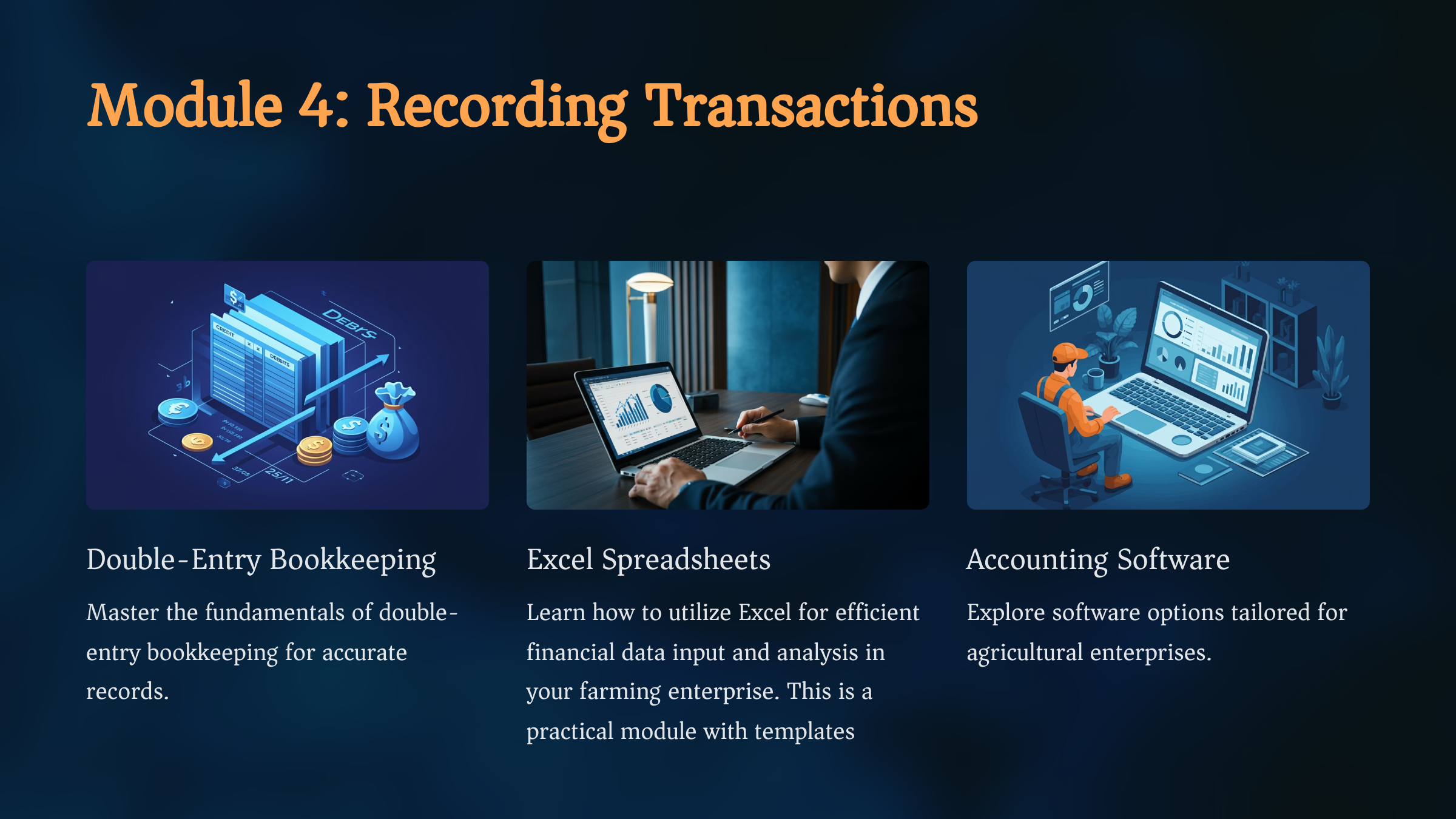 This course ensures you setup the correct accounting and financial management systems for your farming enterprise.